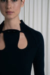Blusa de punto con un diseño moderno y sofisticado, ideal para destacar con estilo. El escote con aberturas y detalles de botones decorativos añade un toque contemporáneo y único, mientras que las mangas acampanadas aportan movimiento y fluidez al diseño. Su silueta ajustada realza la figura, convirtiéndola en una pieza versátil que complementa desde looks elegantes hasta combinaciones más relajadas. Perfecta para quienes buscan piezas con personalidad y diseño impecable.